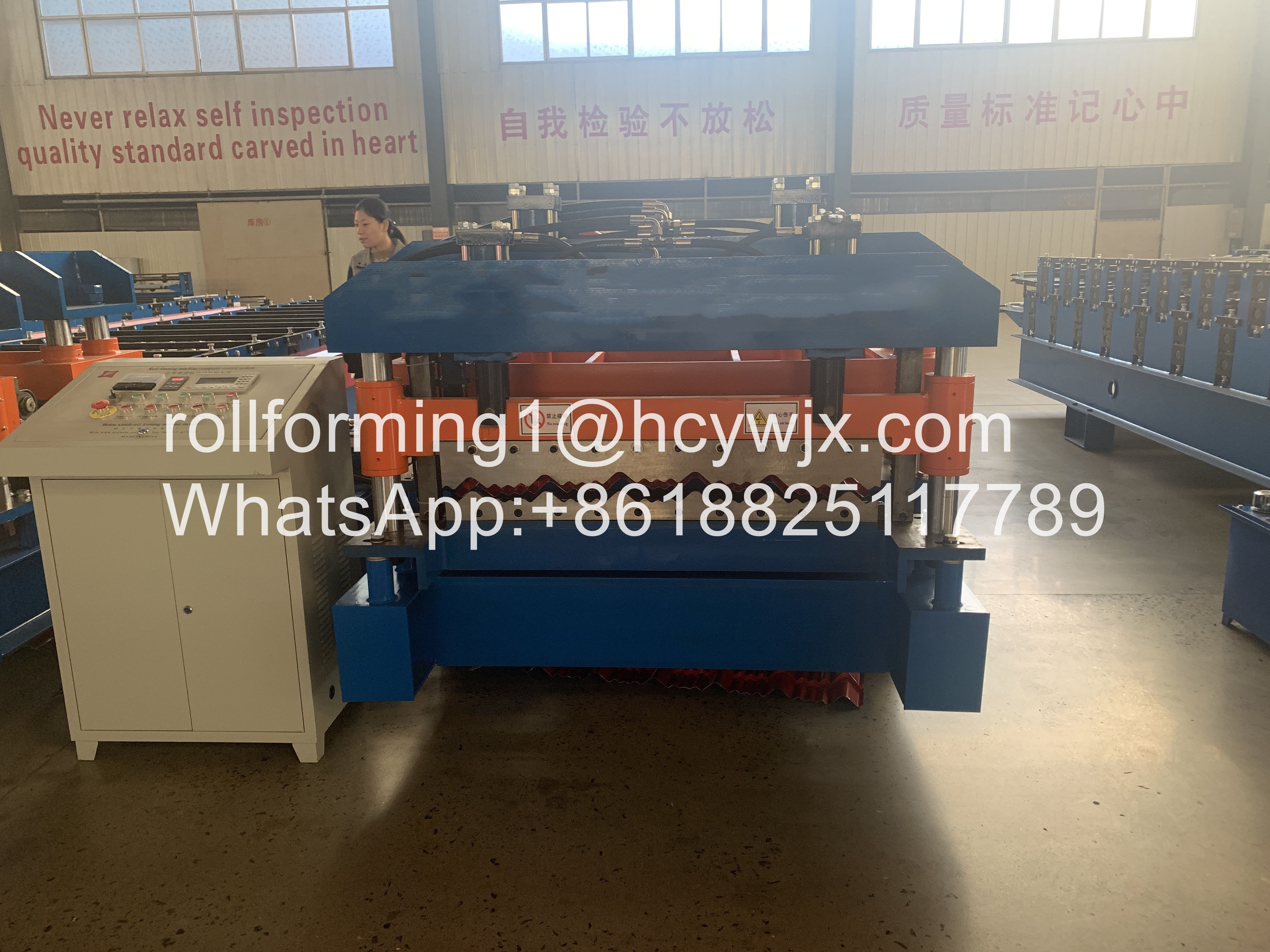 Este estándar europeo de alta velocidad Monterrey esmaltó el rollo de la teja que formaba la máquina es el equipo especial para el balanceo continuo y frío-formar en la hoja de acero. Adopta la hoja de acero que arrolla como la materia prima, decoiling la bobina, rueda y frío-formación continuas, cortada automáticamente al tamaño e hizo salir el panel acabado. El equipo adopta control del PLC, frecuencia de la CA y el ajuste de la tecnología de la velocidad, y realiza automáticamente la producción continua, por lo tanto, es realmente un nuevo tipo de equipo que produce ahorro de energía y alto-eficaz para la estructura de acero.